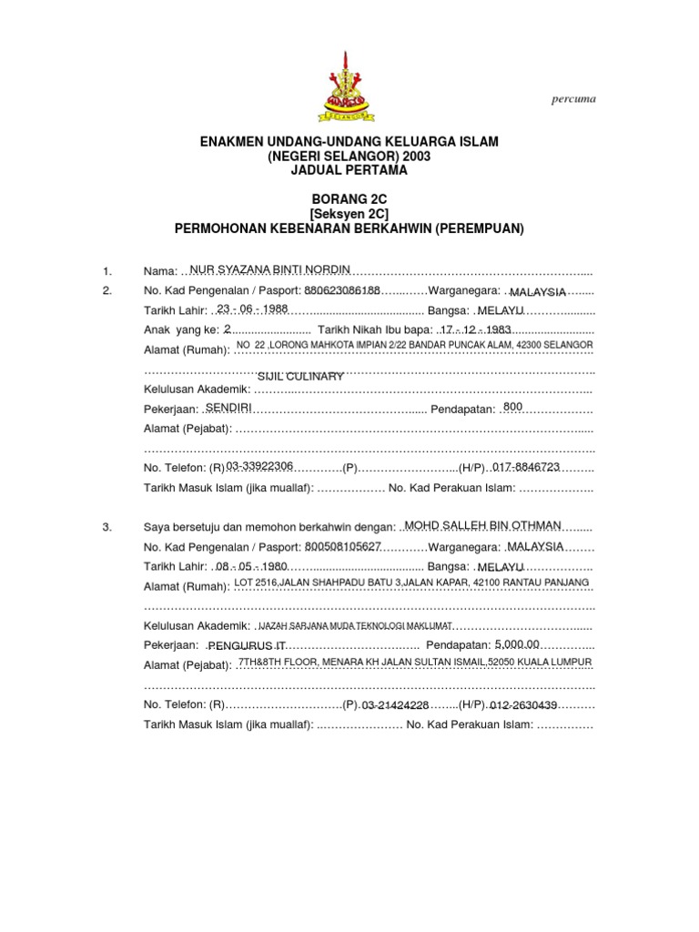 Borang 2a Permohonan Kebenaran Berkahwin Pdf