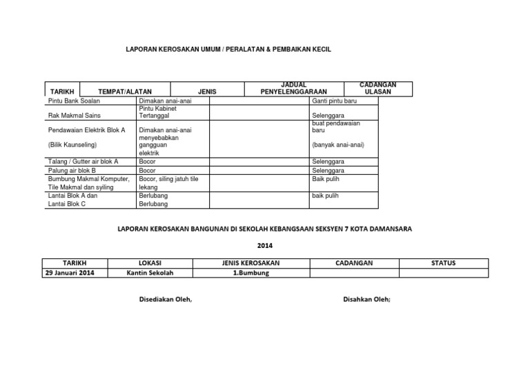 Borang Aduan Kerosakan Bangunan Pdf Document
