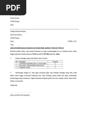 Contoh Surat Rasmi Aduan Gangguan Bekalan Elektrik Xiaominismes
