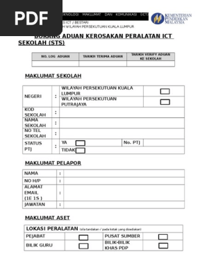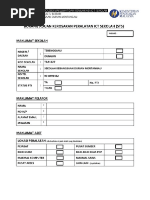 Borang Aduan Kerosakan Peralatan Ict Sekolah Sts