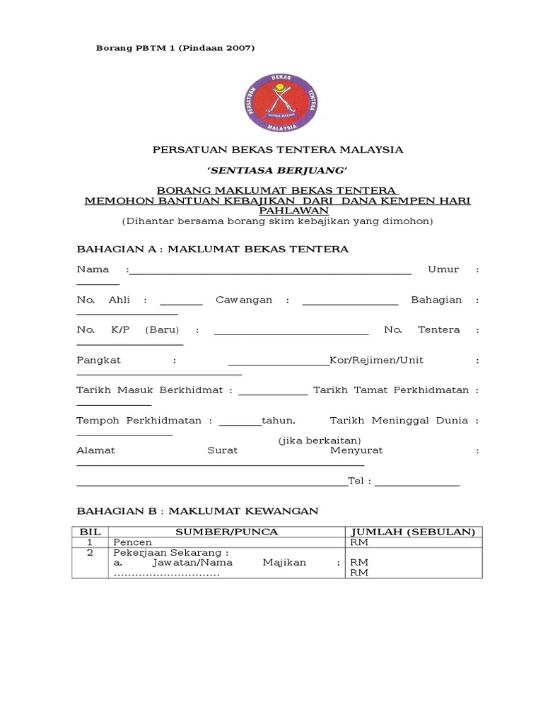 Borang Bantuan Bakti Negara Bbn Pertubuhan Tentera Tidak Berpencen Facebook