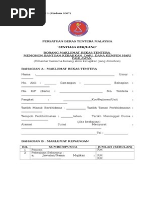 Borang Ahli Persatuan Bekas Tentera Malaysia
