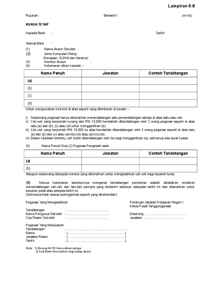 Borang Ak52 Kuasa Tetap Cek 2019