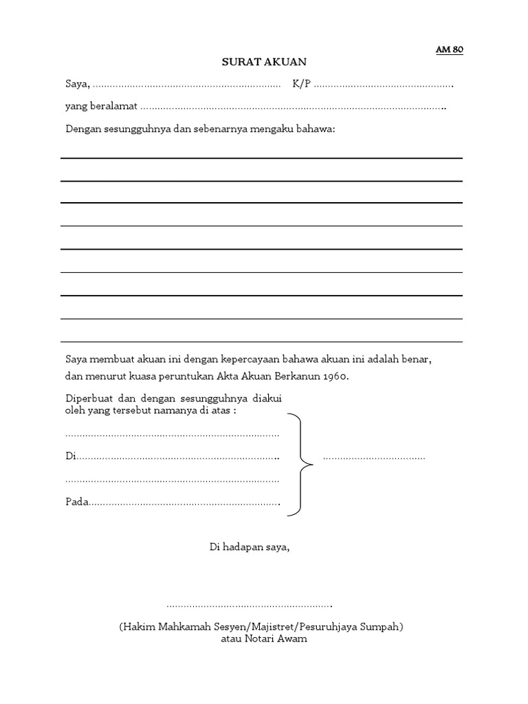 Contoh Surat Akuan Sumpah Zona Ilmu 6