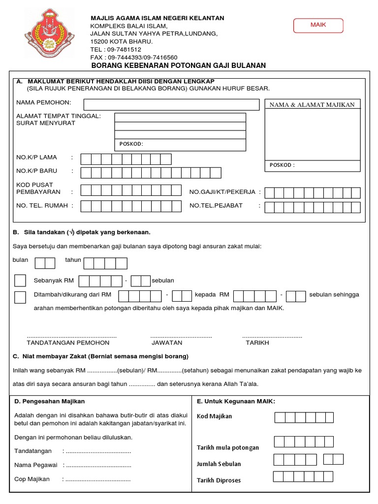 Borang Kebenaran Potongan Gaji Salinan Maik