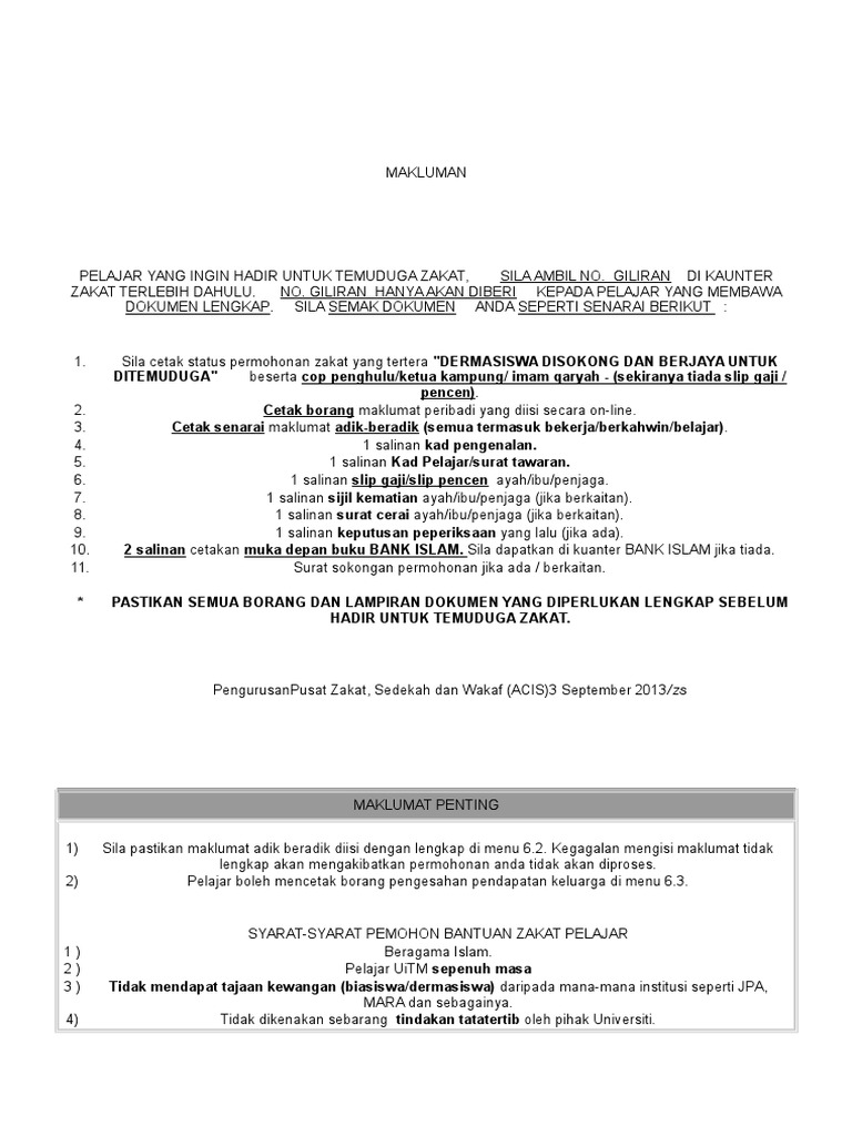 Borang Permohonan Bantuan Zakat Pelajar Uitm Pdf Document