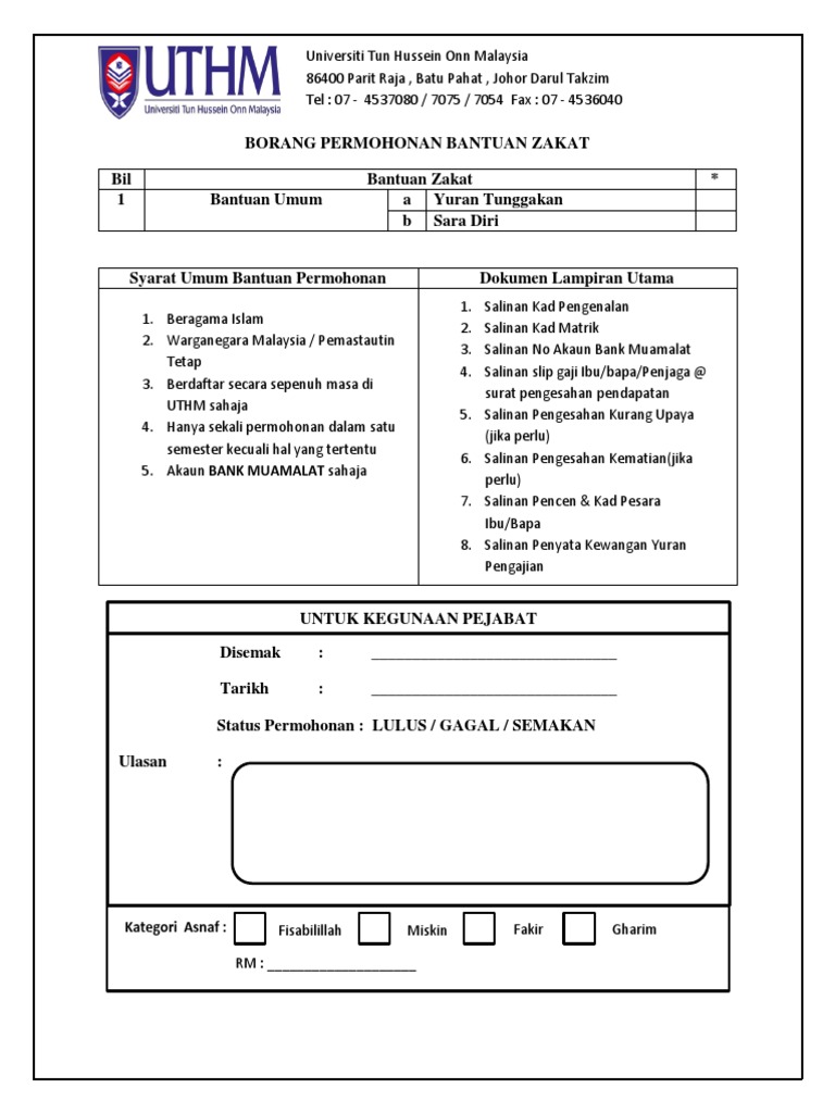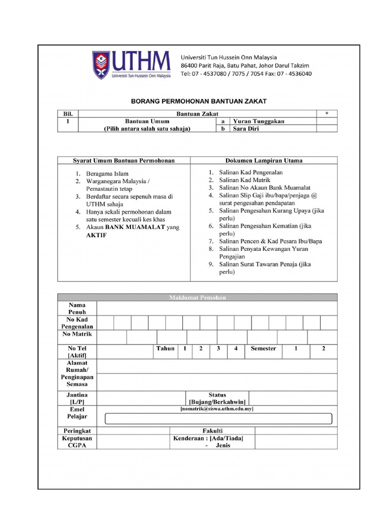 Permohonan Bantuan Zakat Uthm Kini Pejabat Hal Ehwal Pelajar Uthm Facebook