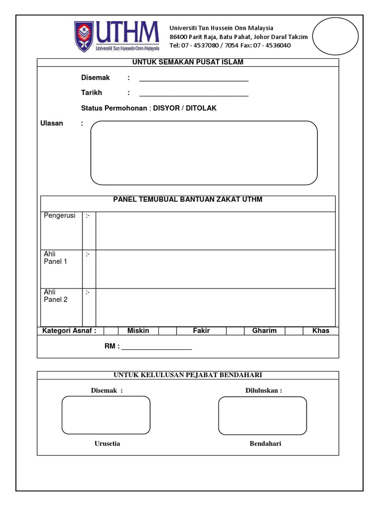 Borang Bantuan Zakat Uthm