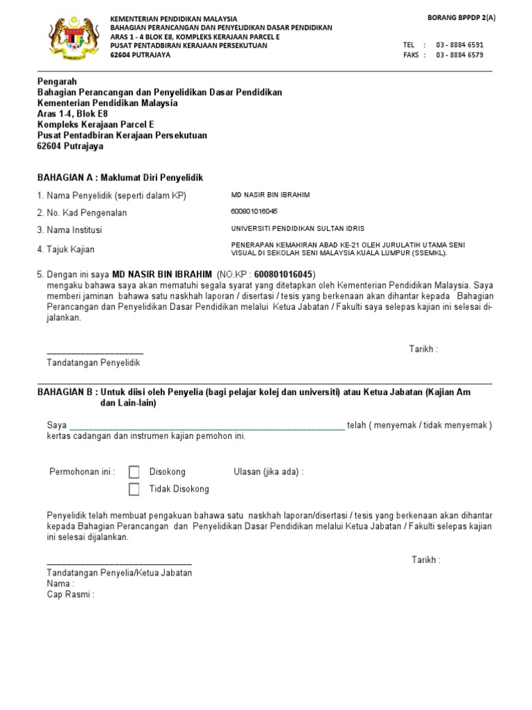 Borang bppdp 2 telah disokong dan ditandatangani oleh ketua jabatan. Tinjauan literatur dan bab 3. Permohonan melalui borang bppdp 1 2 masih diterima sehingga 28 februari 2018. Untuk makluman mulai 1 mac 2018 semua urusan permohonan kebenaran menjalankan kajian hanya boleh dibuat melalui sistem eras 2 0 sahaja.