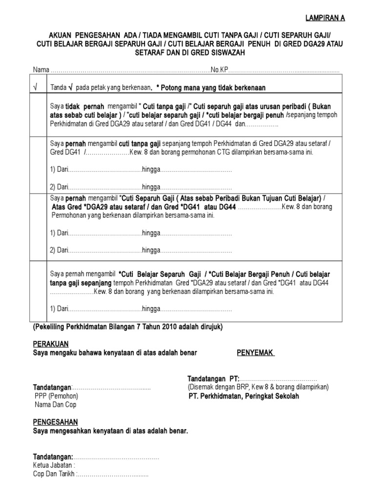 Borang Pengesahan Cuti Tanpa Gaji Doc