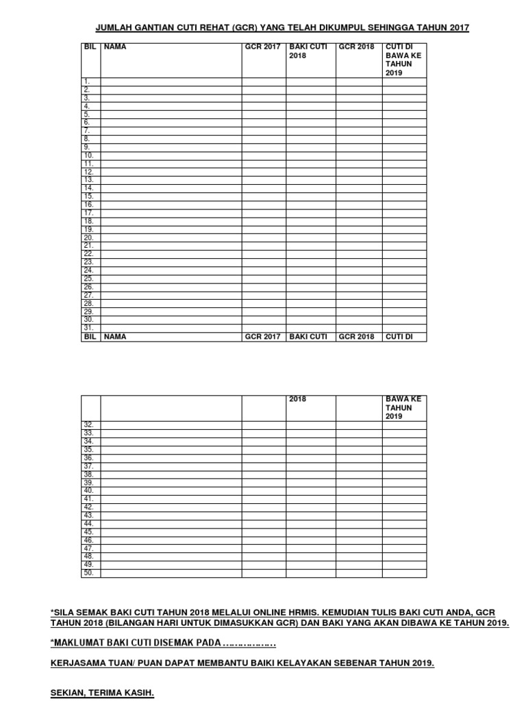 Http Jpnperak Moe Gov My Ppdhilirperak Attachments Article 3793 Borang 20pengumpulan 20cuti 20rehat Cuti 20rehat 20khas 20gcr Pdf