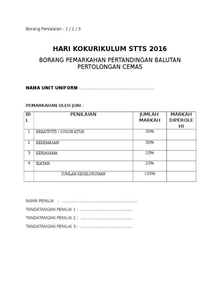 Borang Penilaian Pertandingan Balutan Cemas 2016 Docx
