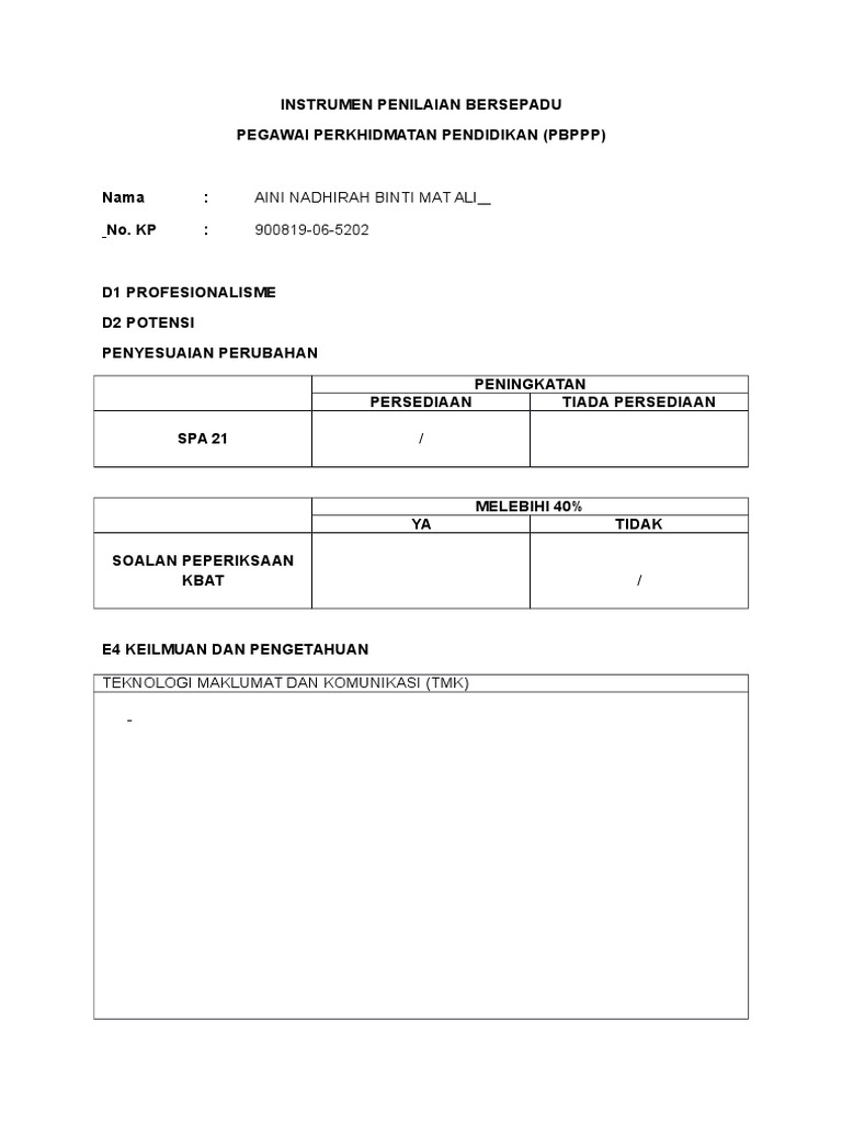 Penilaian Bersepadu Pegawai Perkhidmatan Pendidikan Pbppp Pdf Download Gratis