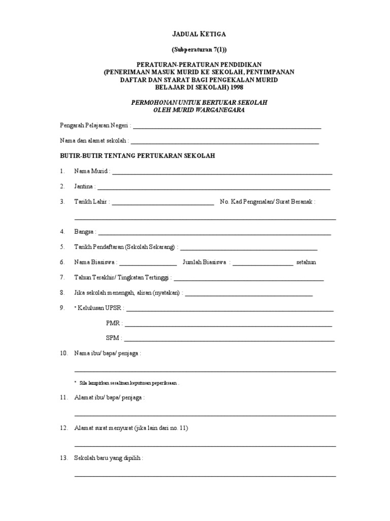 Borang Tukar Sekolah