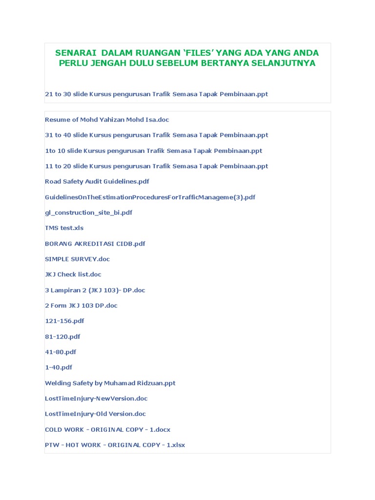 Senarai Dalam Ruangan Files