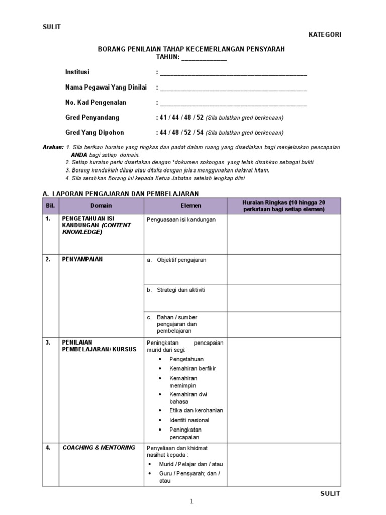 Doc Borang Penilaian Tahap Kecemerlangan Guru Borang Kategori 1b Guru Nor Asmah Awang Academia Edu