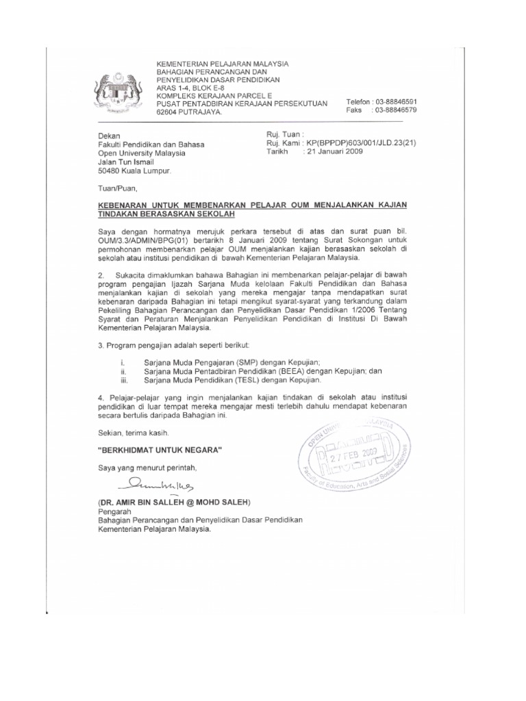 Surat Kebenaran Guru Keluar Untuk Menjalankan Kajian Kpm