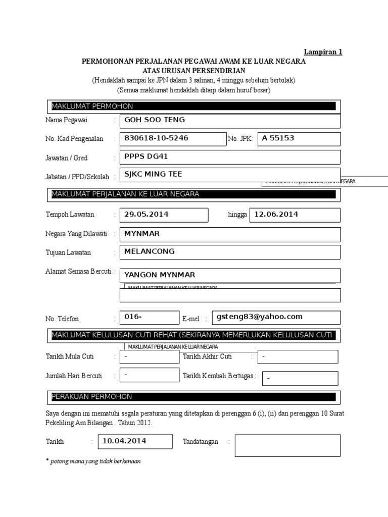Borang Permohonan Ke Luar Negara Bagi Kakitangan Awam Blog Cikgu Azman