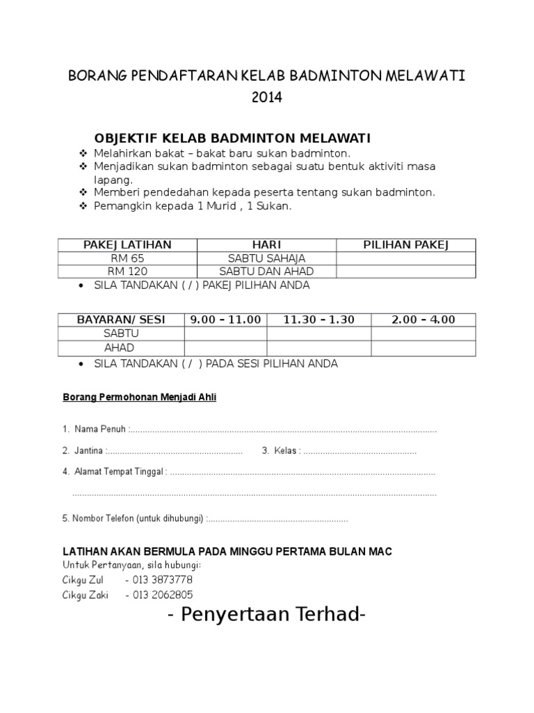 Generationx Borang Keahlian Badminton Sebarang Facebook