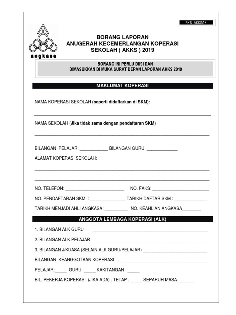 Borang Laporan Anugerah Kecemerlangan Koperasi Sekolah Akks 2019