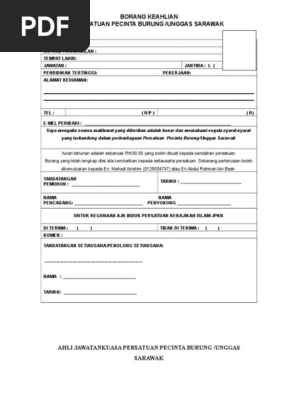 Borang Keahlian Persatuan Pecinta Burung Unggas Sarawak