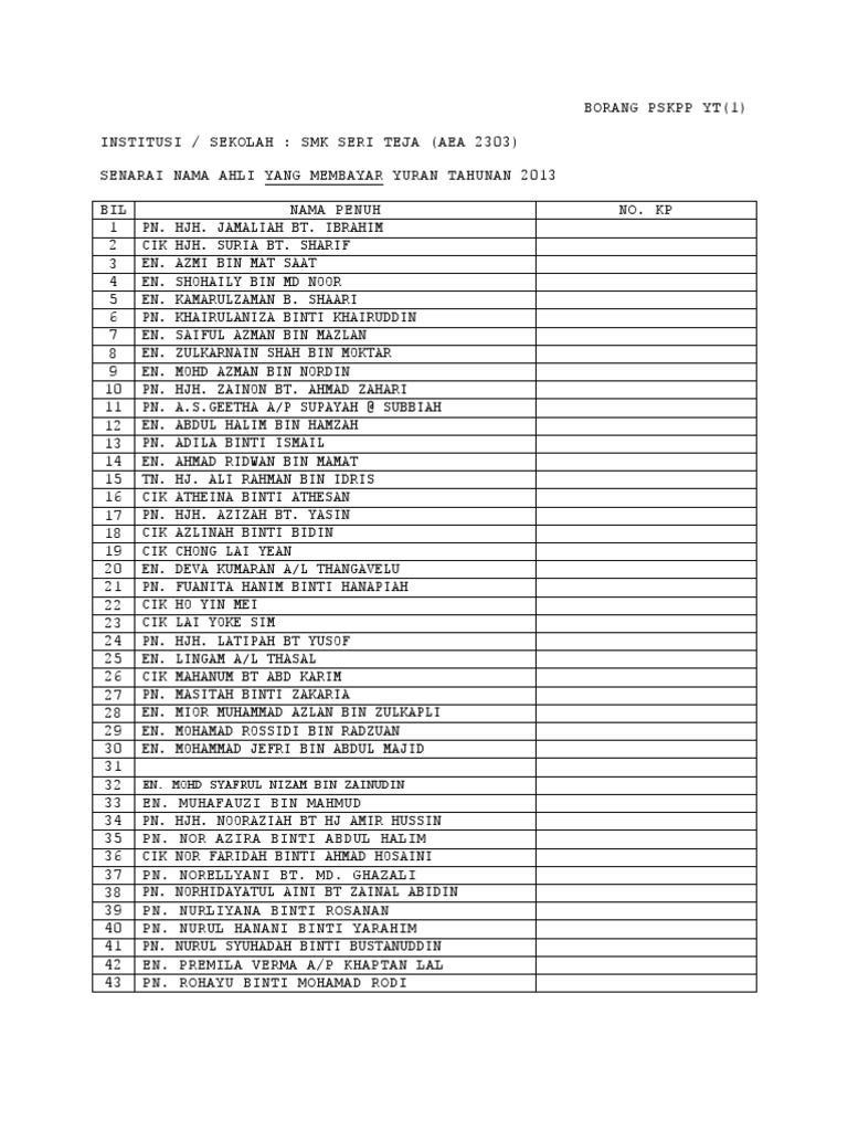 Borang Pskpp 1 Yt