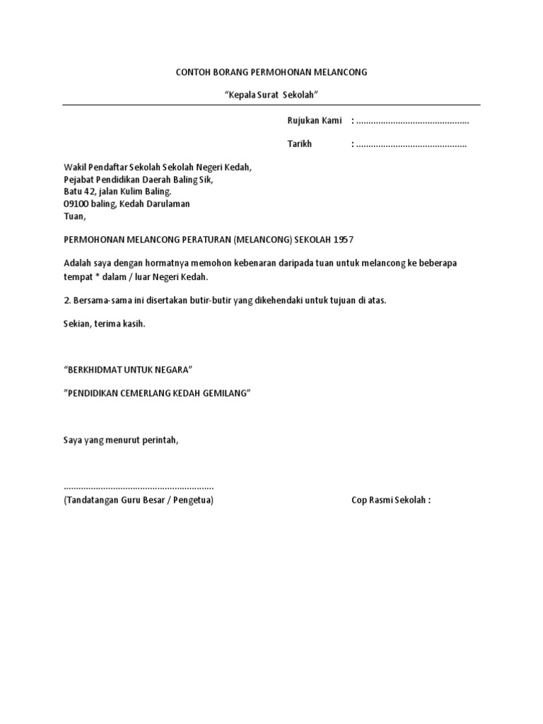 120 hits assalamualaikum dan salam sejahtera cuti hujung tahun ni nak ke mana ada plan nak keluar negara tak haaa kalau dah siap2 beli tiket guru guru atau pegawai kerajaan perlulah mengisi borang ke luar negara jadi di sini saya nak memberikan pand. Sebab sebab hendaklah diberi jika penandatangan bukan guru besar pengetua borang permohonan perlu dihantar ke ppd baling sik dalam tempoh 4 minggu sebelum tarikh lawatan. Setiap penjawat awam yang ingin ke luar negara atas urusan peribadi atau pun tugas perlu mengisytiharkan tindakan mereka. Alasan sekiranya pegawai sering berulang alik ke negara jiran perakuan pemohon tarikh.