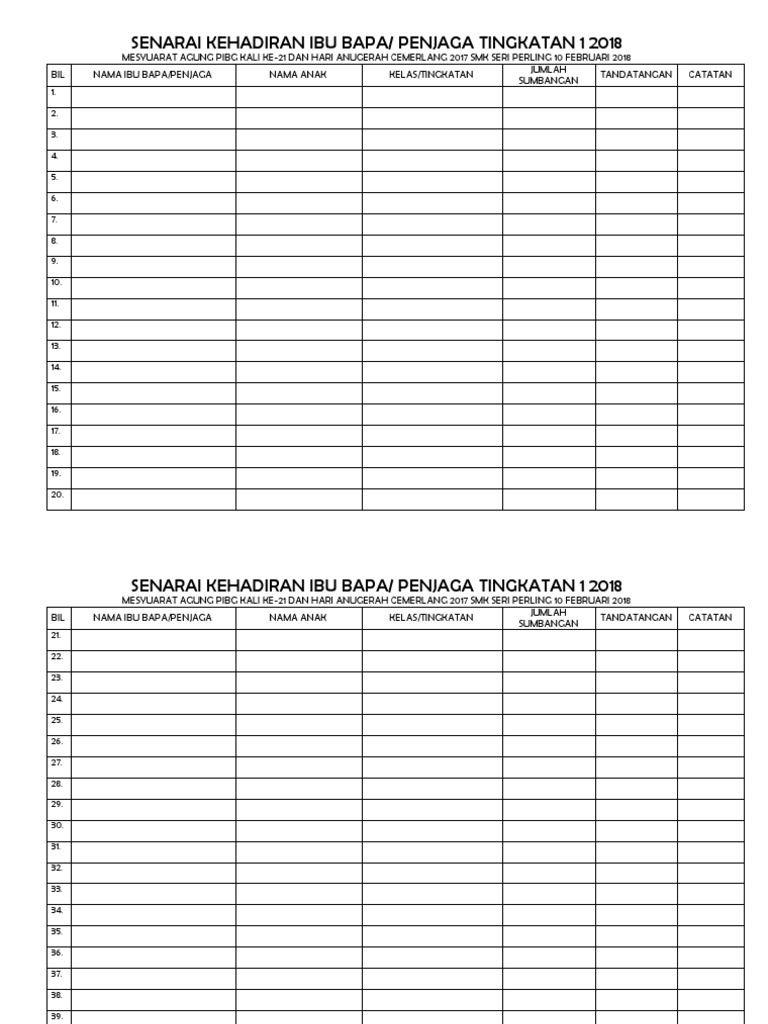 Borang Kehadiran Mesyuarat Agung Persatuan Ibu Bapa Dan Guru Docx