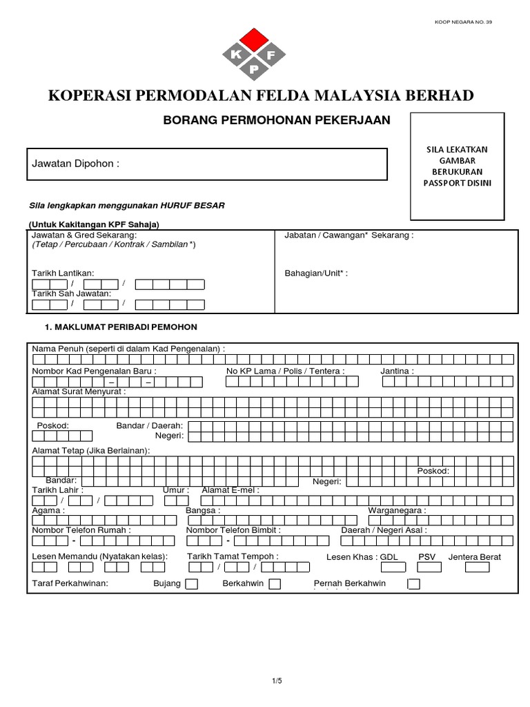 Koperasi Permodalan Felda Malaysia Permohonan Pekerjaan 16 3 Koperasi Permodalan Felda Malaysia Berhad Borang Permohonan Pekerjaan Jawatan Dipohon Unit Bahagian Pdf Document