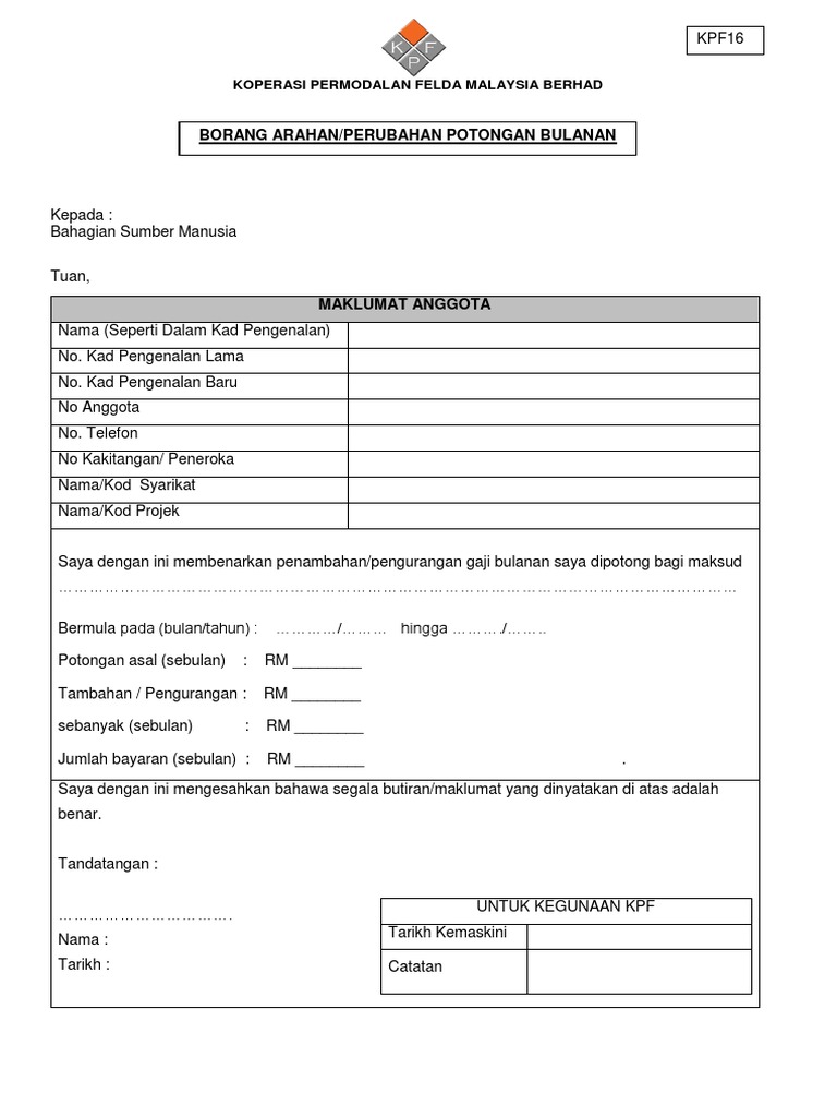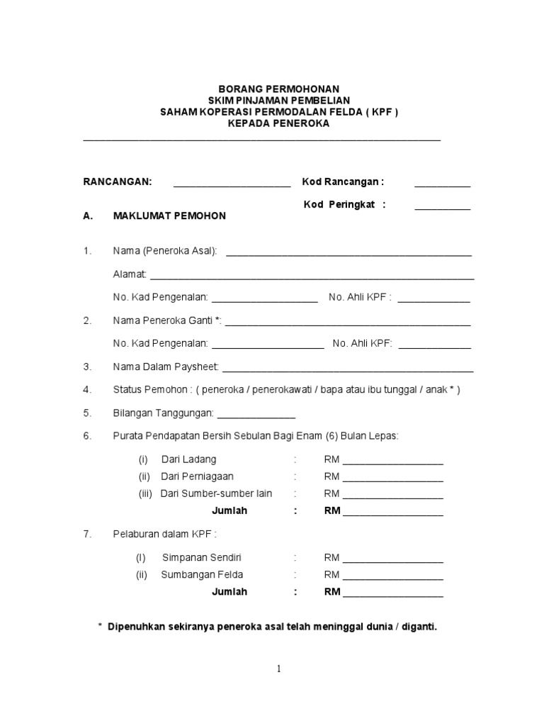 Koperasi Permodalan Felda Malaysia Turun Borang Kpf Bp01 Pdf Koperasi Permodalan Felda Malaysia