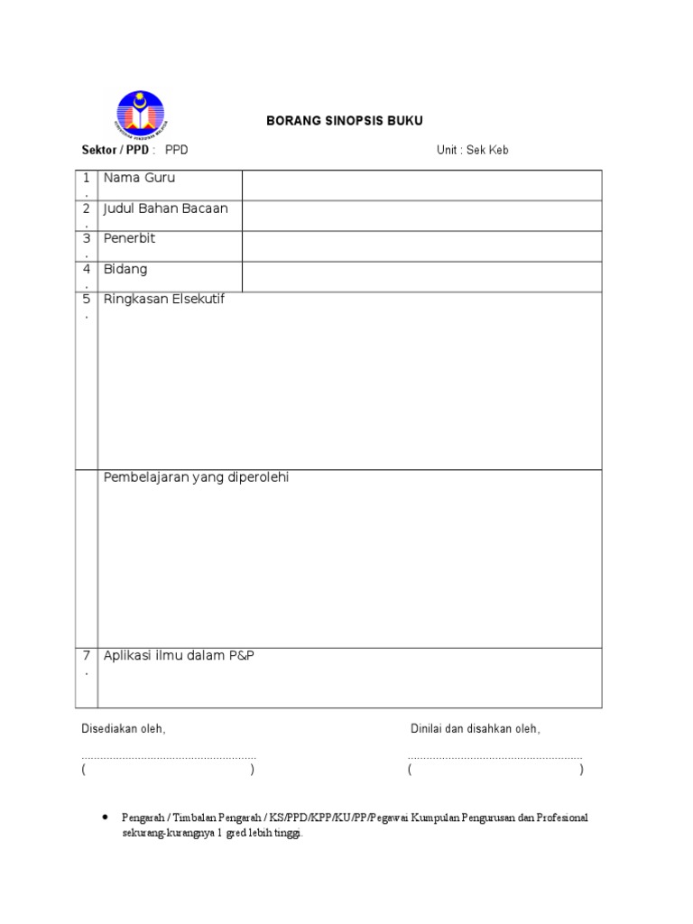 Borang Sinopsis Buku Untuk Guru Download