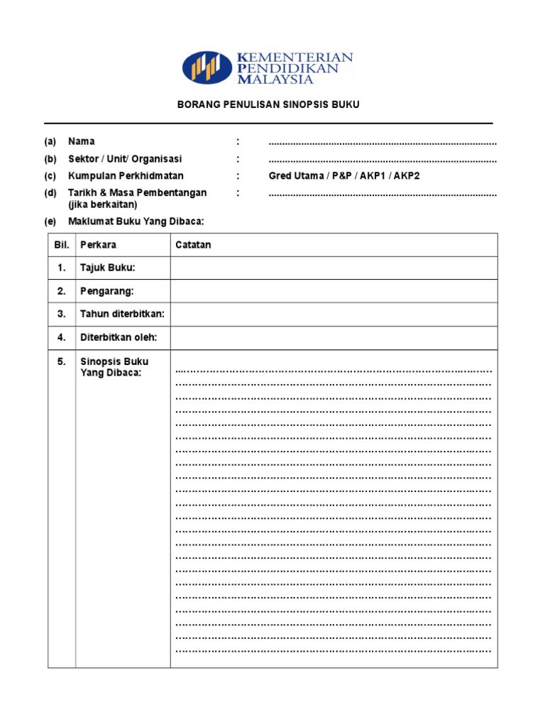 Borang Sinopsis Buku Doc Borang Kosong