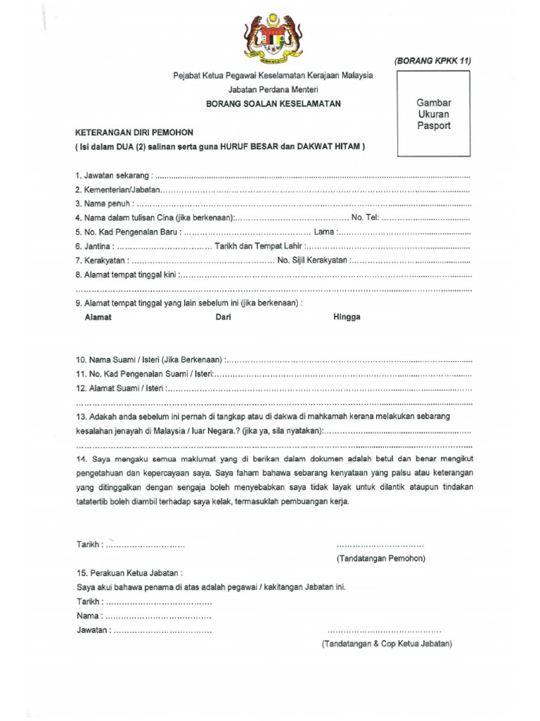 Borang Kpkk 11 Tapisan Keselamatan