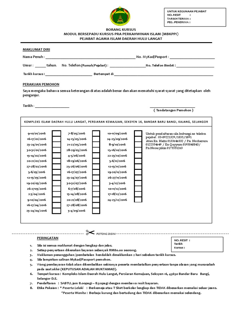 Borang Kursus Kahwin Hulu Langat