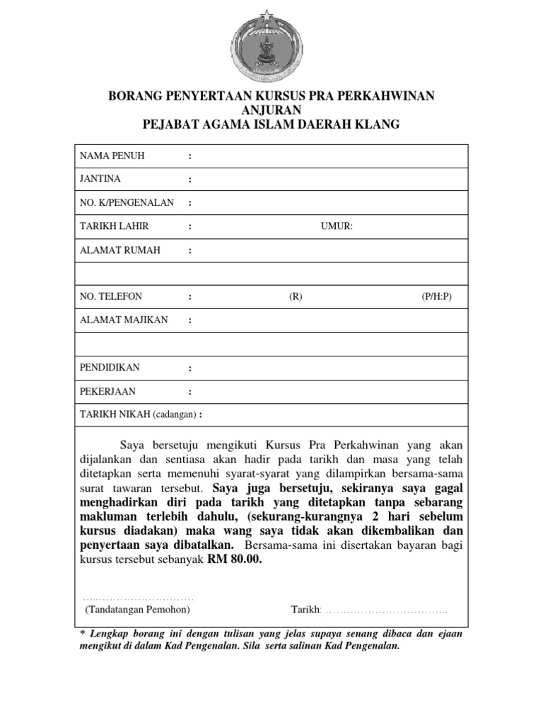 Borang Kursus Kahwin Klang 2018