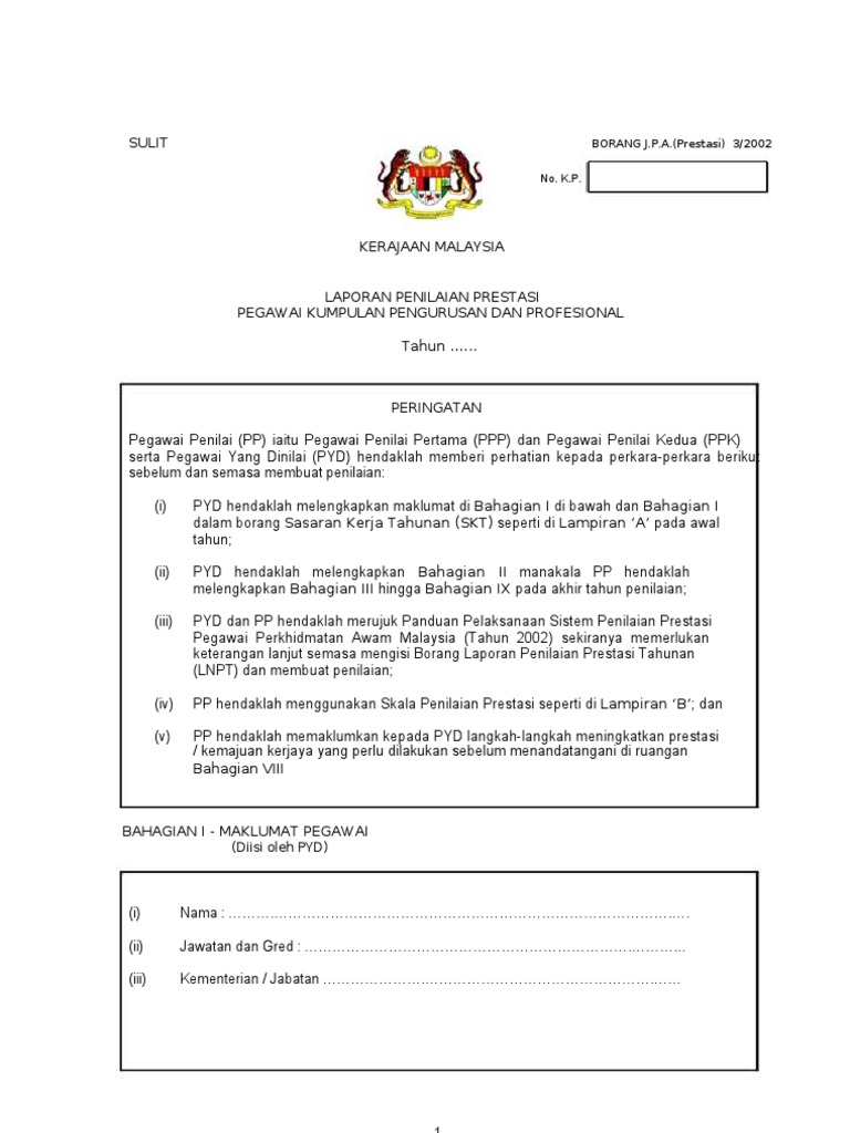 Borang Laporan Penilaian Prestasi Pegawai Kumpulan Pengurusan Dan Profesional