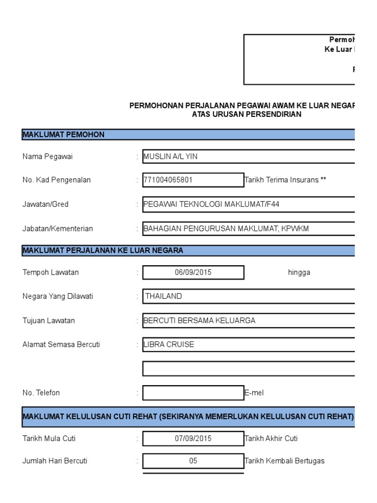 Borang Permohonan Lawatan Ke Luar Negara Persendirian