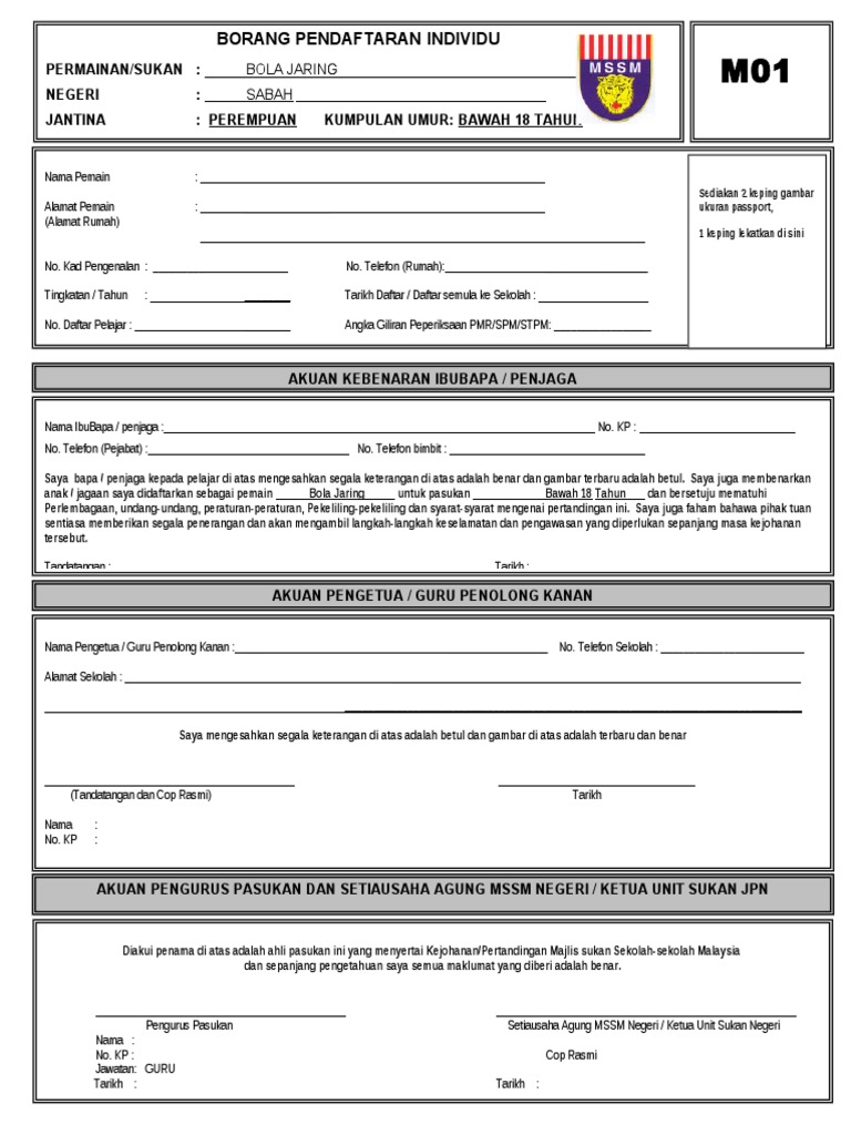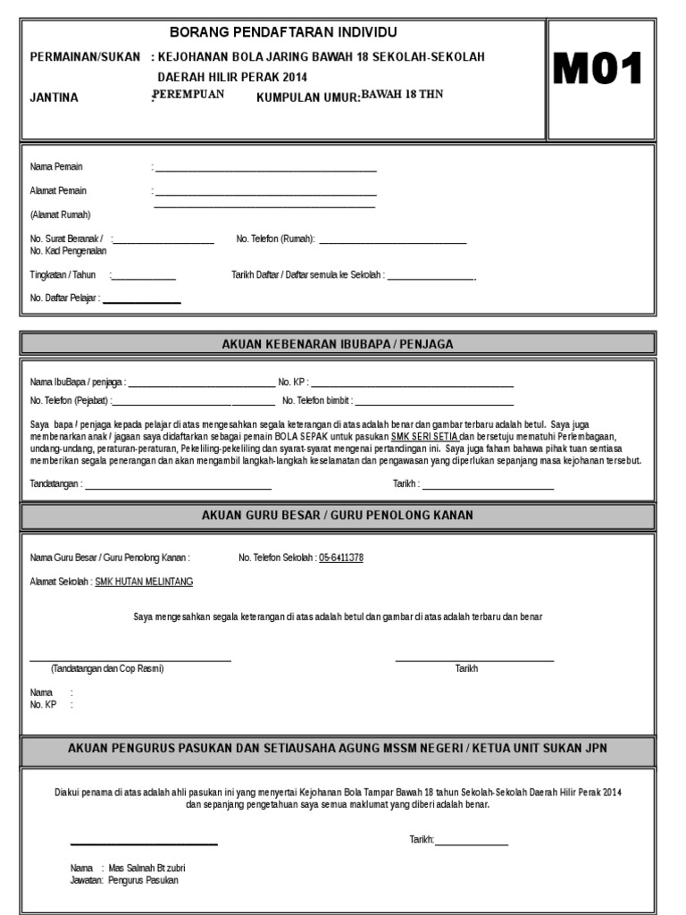 Borang M01 Bola Jaring
