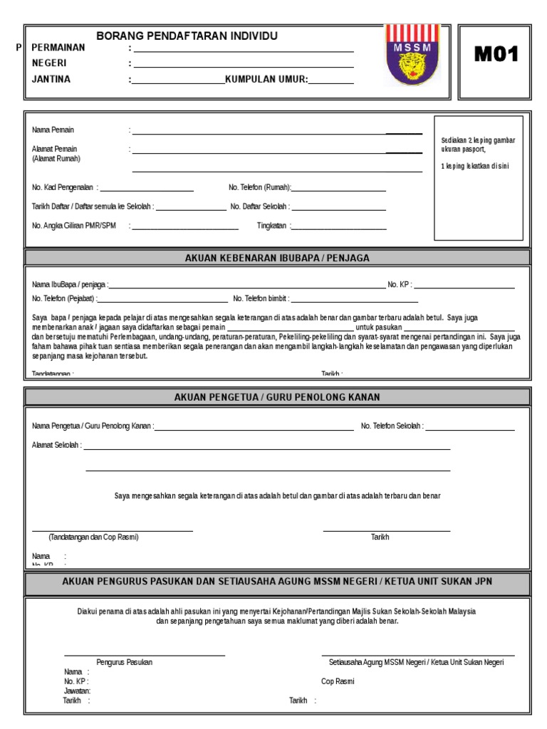Borang M01 Mssm Doc Document