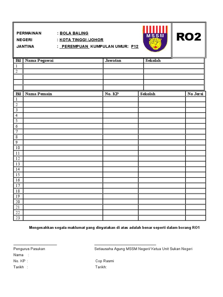 Borang Pendaftaran Pemain Kokurikulum Smk Bukit Garam