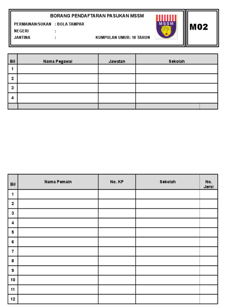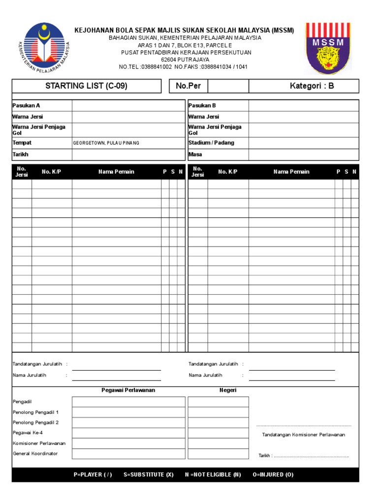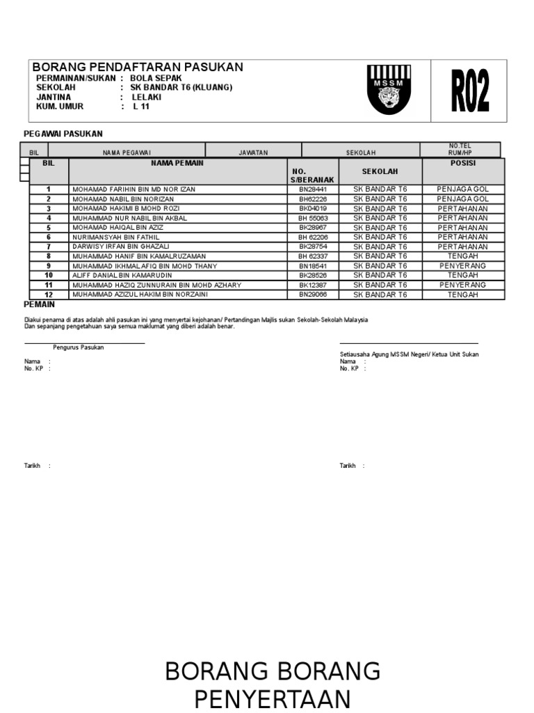Borang Pendaftaran Pemain Kokurikulum Smk Bukit Garam