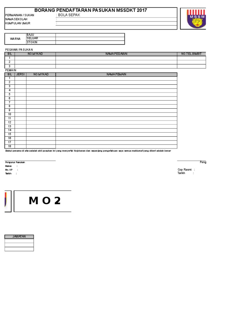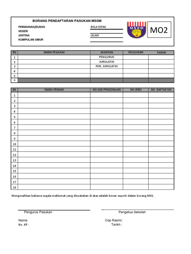 Borang Pendaftaran Bola Sepak R02 Doc Document