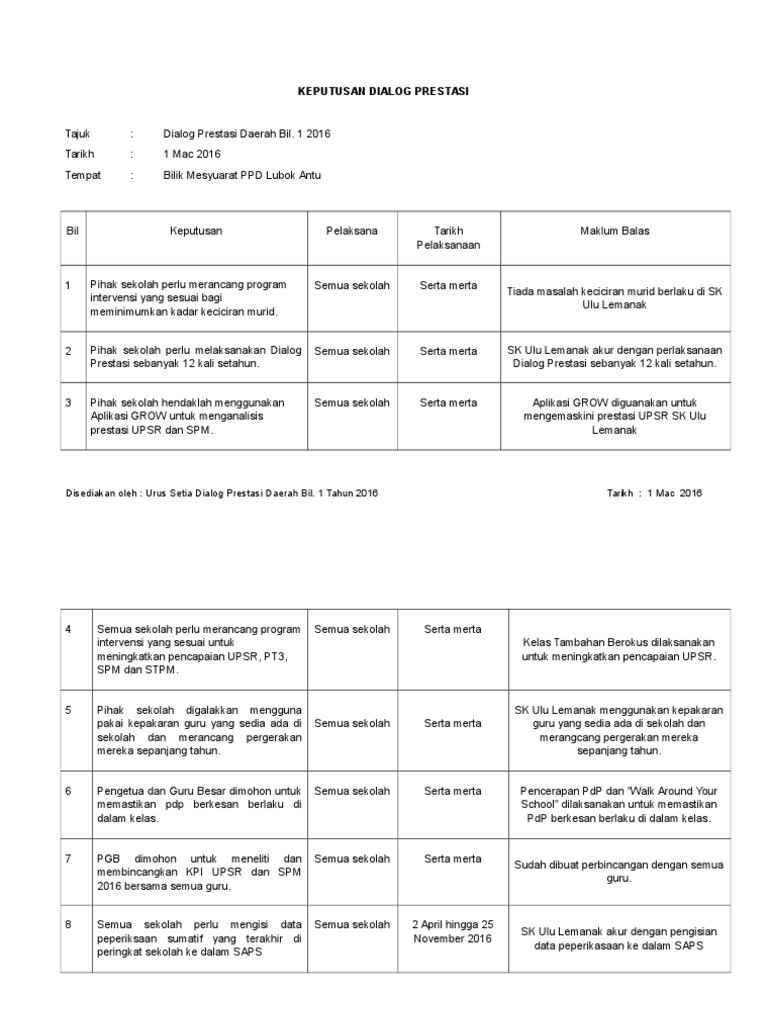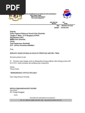 Borang Maklum Balas Keputusan Dialog Prestasi Daerah Bil 1 2016 Ppd Lubok Antu Docx Pdf Document