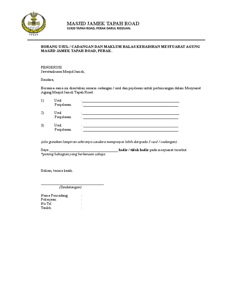 Surat Maklum Balas Kehadiran