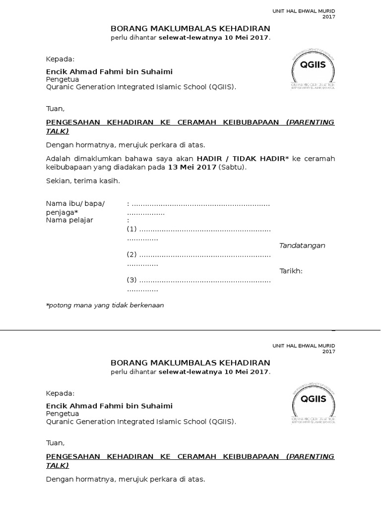 Surat Maklum Balas Kehadiran