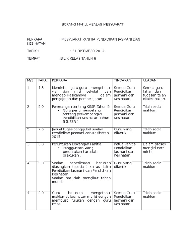 Maklum Balas Minit Mesyuarat Guru Kali Ke 2 2020 Pages 1 3 Text Version Anyflip