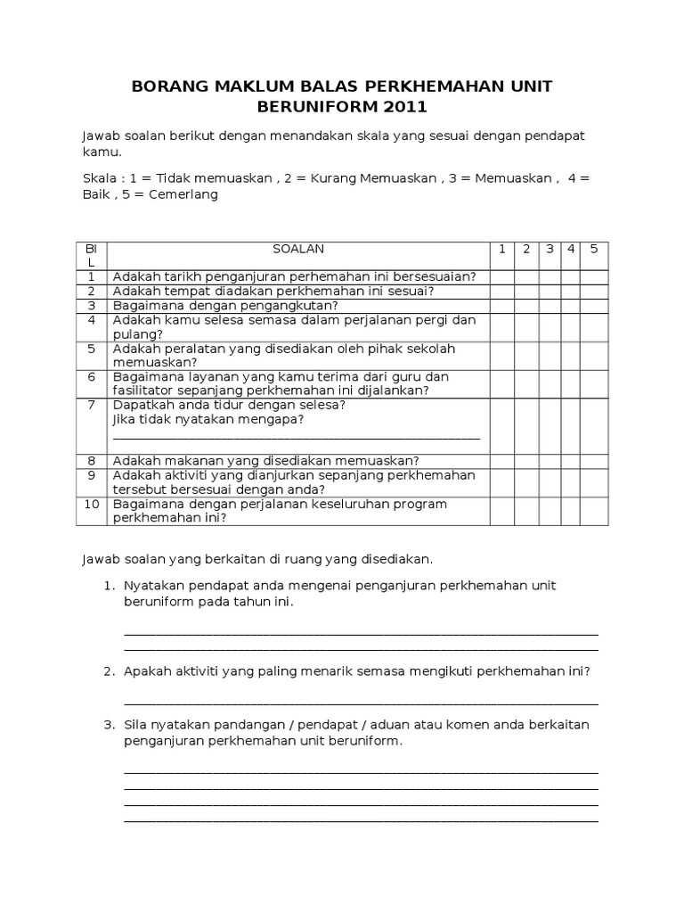 Kb Borang Maklum Balas Pdf Document