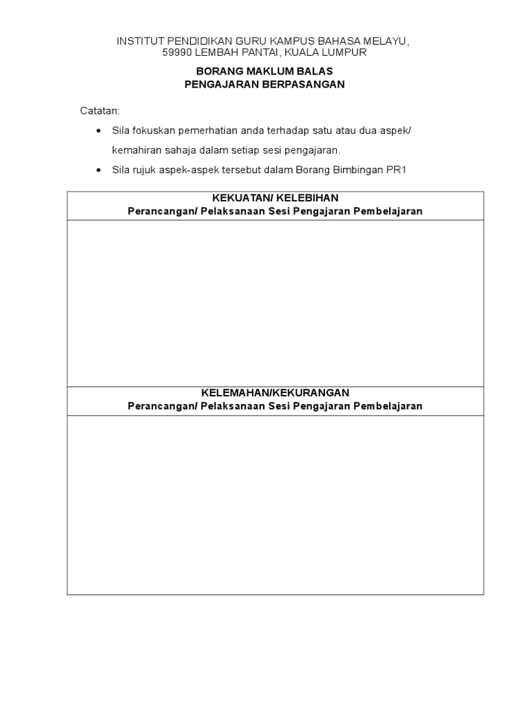 Ipgkik 18 Borang Maklumbalas Pengajaran Berpasangan