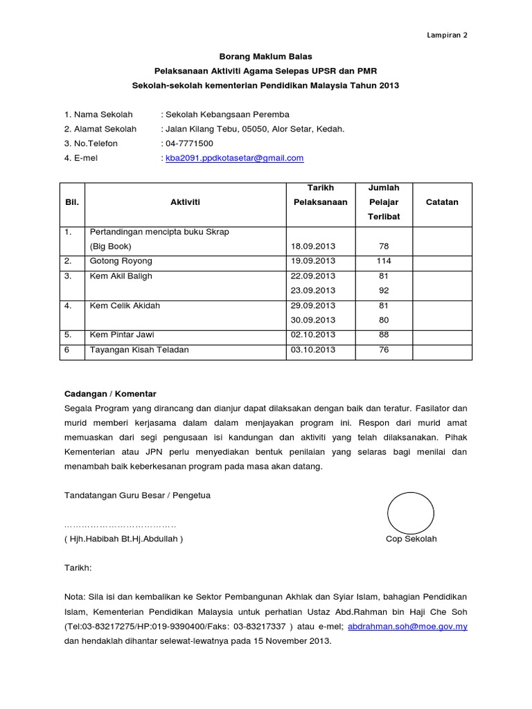 1 Contoh Borang Maklum Balas Pdf