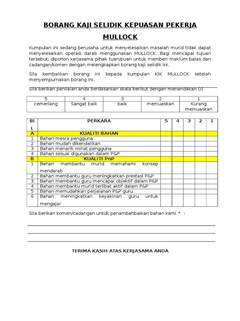 Contoh Borang Soal Selidik Motivasi Pekerja Contoh Si
